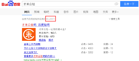 1. 针对客户在百度搜索中贫乏的结果展示,肆行传媒团队利用知道问答、BBS论坛、贴吧文库等多种渠道,发布了多条与才米公社业务和目标用户相关的正面信息,从各方面为网站建立正面形象,提高品牌曝光度,扩大其在同行竞争中的口碑和竞争力。