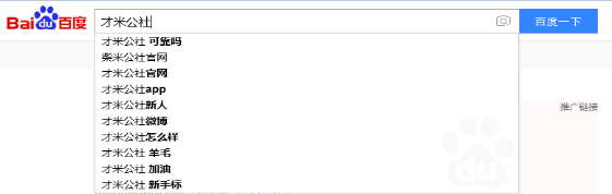截止当前,百度“才米公社“,首页显示的十条结果均与才米公社相关,且百分百为正面信息。此外,营销推广前,才米公社在百度搜索引擎中既没有相关搜索,也不存在搜索下拉框;经肆行传媒口碑营销后,才米公社在百度的搜索热度段时间内达到一定指数,并且经久不消,在百度搜索下拉框和相关搜索均显示出多样性推荐搜索选项。